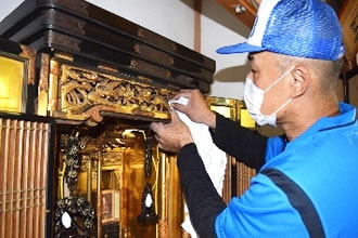 家財を細かな部分まで清掃し、チェック係が確認し、OKが出たら次に進む。
