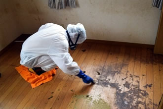 現場状況にもよりますが、今回のように汚染原因や範囲が不明瞭な場合、特殊清掃スタッフ二名で対応させて頂く事になります。
