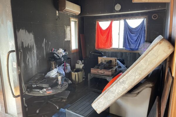 2LDKの家屋内の家電が発火し、煤が全域に回りました。家財撤去、煤清掃、完全消臭をご依頼いただき役7日間で施工完了しました。 使用工法 【特許番号】特許第6624753号、特許第7289143号