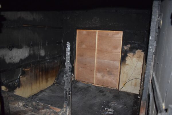 倉庫内に回った煤の清掃作業を行いました。棚等の備品などの清掃も行い元通りに戻しました。