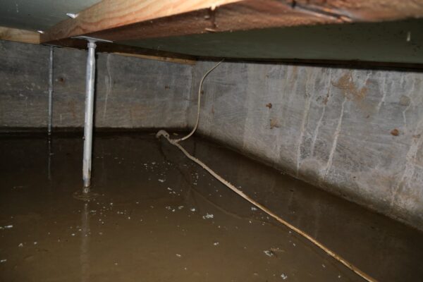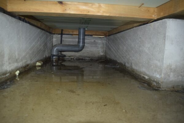 大雨により雨水が床下に流入してしまっておりました。排水清掃をして、カビ除去作業を施しました。