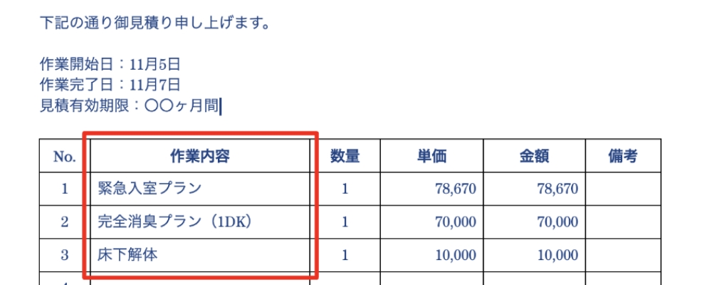 2-1. 怪しい見積もり書のチェック項目|作業内容