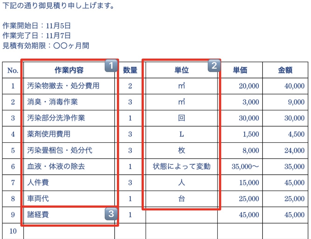 特殊清掃業者の見積もり書について、深くご理解いただけたかと思います。
